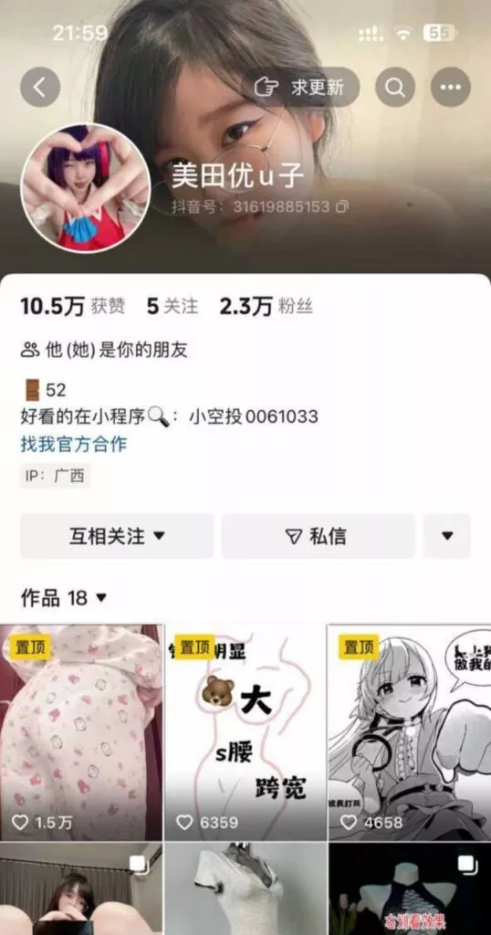 抖音2万粉丝巨扔擦边萌妹美田优U子,内地平台极限擦边,穿着各种大尺度情趣内衣上演个人维密秀,在海外却重拳出击,全果展示一对豪扔,不得不说,这匈真的是又挺又大,是科技还是自然生长的?