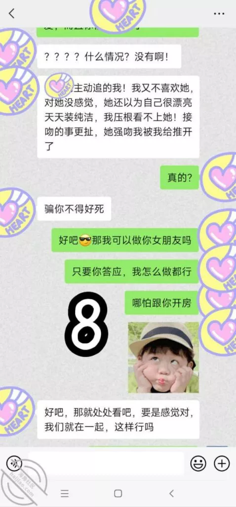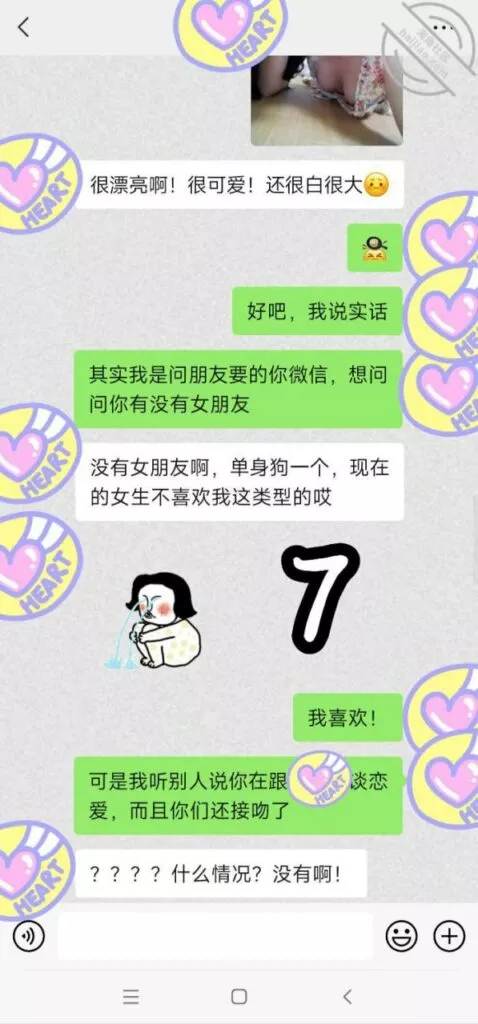 已经看出他是个滥情的人了,我就跟他说其实我喜欢他很久了,问朋友要的他的微信号,想问问他有没有女朋友!结果他说没有,还是单身!我又问他“我朋友说你最近一个叫的女生在谈恋爱啊,还看到你们接吻了”(这里的指的是我女儿的名字),没想到他直接说“别听你朋友胡说,那主动追我,我又不喜欢她,她天天还觉得自己挺漂亮的,压根就看不上她!接吻也是你朋友看错了,是强吻我亲我,被我推开了”。