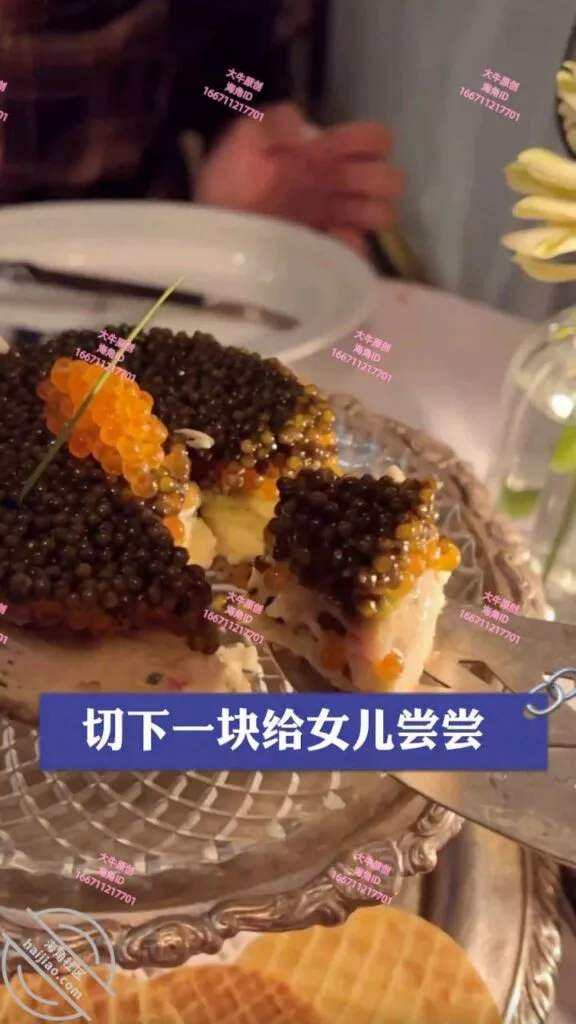 开始上来一道菜,一个小蛋糕上铺了一层鱼子酱,下面铺了层薯片。。。我还真是为这个大厨的奇思妙想点个赞,我还挺好奇这道菜到底是什么味道。