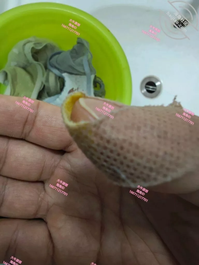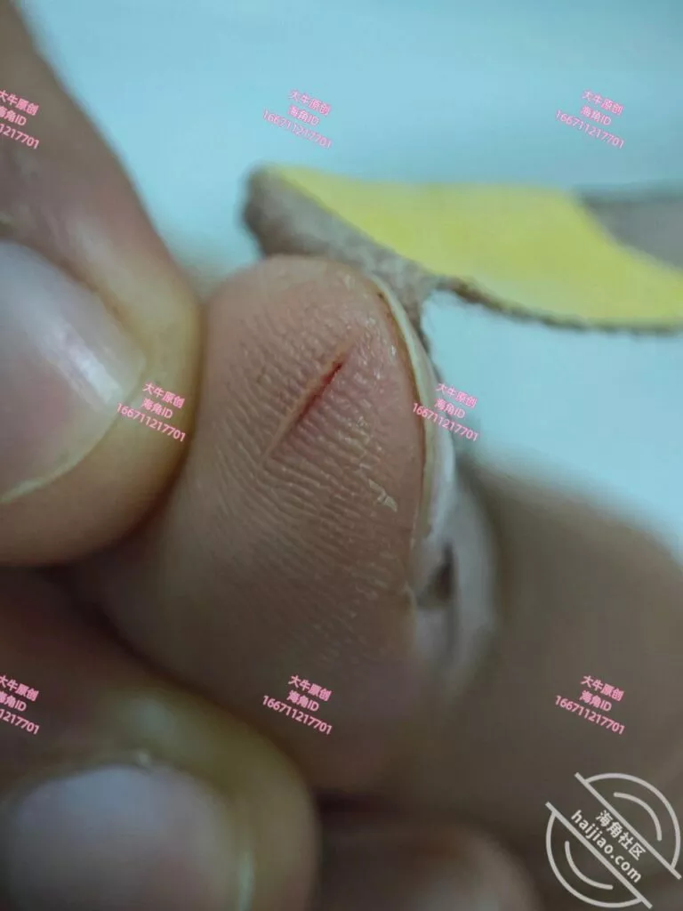 给你们瞅瞅我这老手,大拇指今天还伤到了,割了一条大口子,割得还挺深。洗内裤被这个肥皂水一泡,哎哟Cao是刺激的生疼。