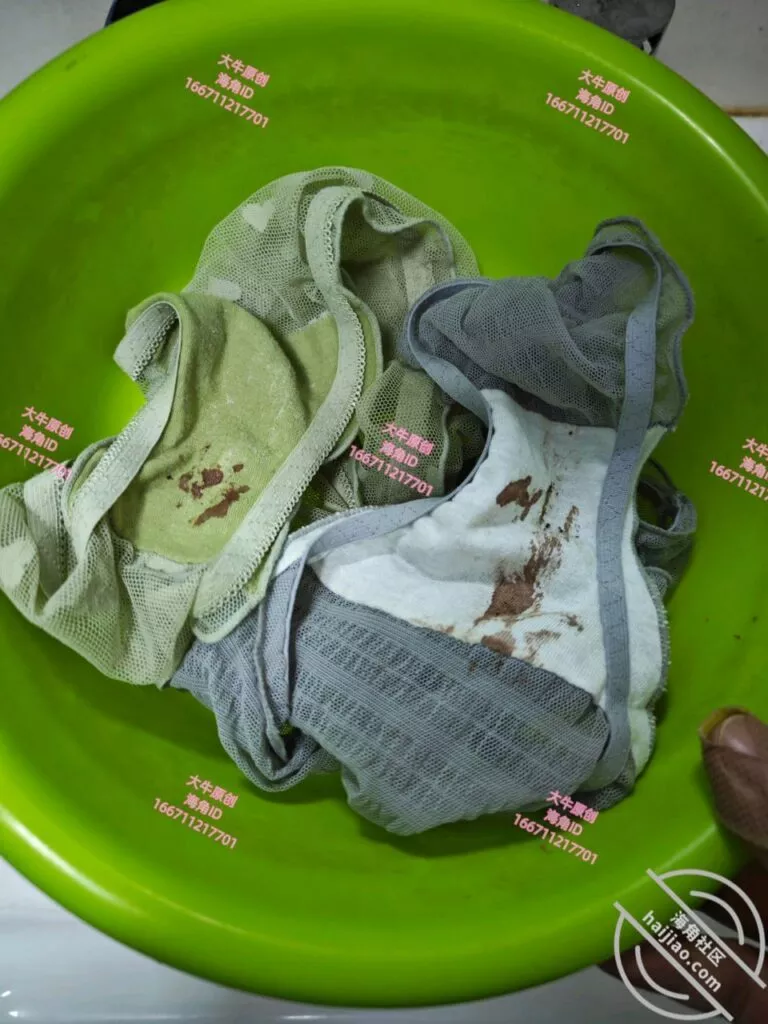 你们放心,我还不是变态,没有拿起来闻血的味道,你们要是有喜欢月经血的,可以给我留言,我给你寄点带血厕纸去。左边这条内裤血量很明显的比右边的少,等明天再观察一下厕所的垃圾桶,看看厕纸上的血量是不是也少了。如果赶得上,我还是想在女儿生日当天做一次爱的,我想全拍下来当做纪念