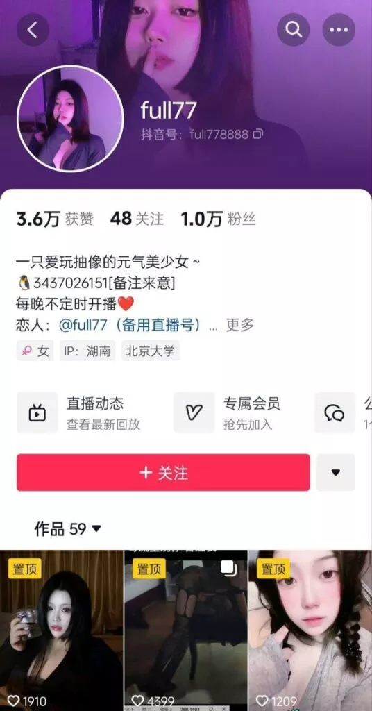 抖音新晋擦边网红巨扔御姐full77,初次亮相便凭借其优越的身材和出众的颜值,成功吸引了众多粉丝的关注。然而,最近却有传闻揭露她的清纯形象并非真实,称其实际上是一名高价外围女,并且还流出了她的一些大尺度视频。